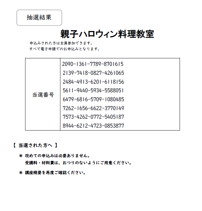 抽選結果は、9月26日(金曜日)に当選した方の受付番号をHPで発表します。