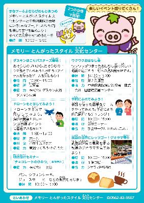 文化センターと図書館のなかにいる「まなブー」と「よむらび」を探して、文字をあつめよう!すべて文字をあつめたら、うけつけにきてね。いいことがあるかも…! 10:00~15:00 |