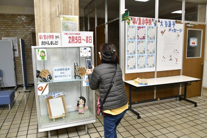 役場に来庁し、展示を見た方々は「大谷選手?すごい!」と足を止めグローブに見入り、中には記念にとスマートフォンで写真を撮る方の姿も見られました。