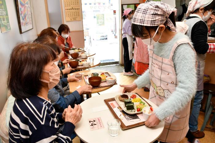 子どもから高齢者まで「食」を通してつながる“まち”になれたらいいなと「みんなでレストラン」をテーマに、子どもが考え・子どもがつくるレストラン「KID’S亭inラソプラザ」が1日限定で開店しました!運営したのは小学生から中学生までの10名。子どもたちはキッチン係、ホール係など、緊張しながらもテキパキと自分たちの役割をこなしていました。当日のメニューはハンバーグをメインにした「大人も子どももお子様ランチ」。運営に参加した小学生は「お客さんがよろこんでくれると嬉しいなと思いながら作っています」と笑顔で答えてくれました。開店から大盛況で、お客さんも「特にハンバーグがおいしかったです」とおいしそうに食事を楽しんでいました。